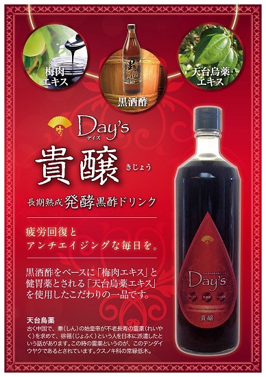 長期熟成発酵黒酢ドリンク。長期間熟成させて黒酒酢と梅エキス、